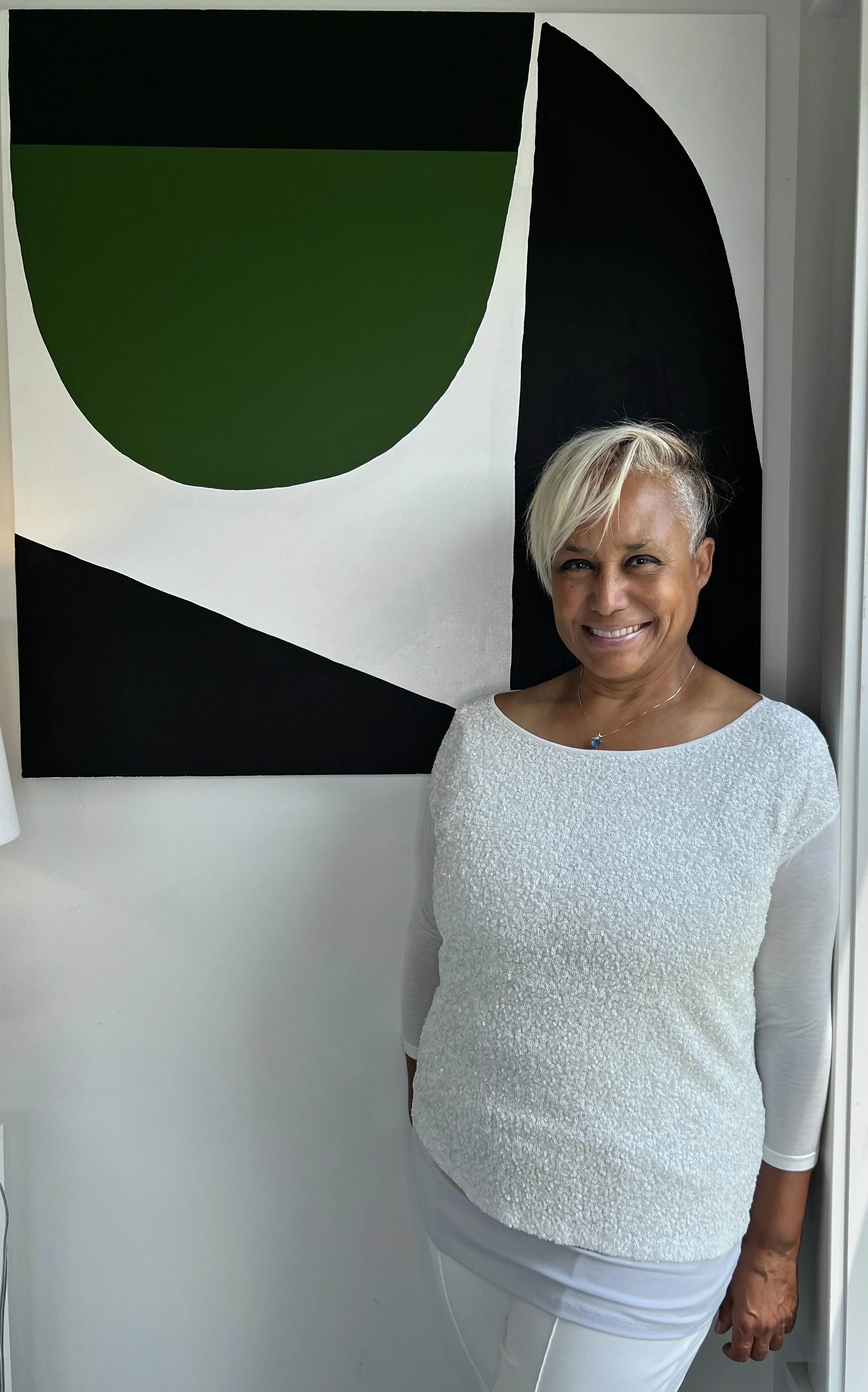 Pirouz began building her business in real estate developing and quickly discovered her love for interior design and construction. What began as a project to create a few large-scale paintings to cover the walls of the properties she was staging blossomed into an art business that began to get the attention of collectors and buyers online. One post turned into a snowball of many more posts and connections with collectors who love her eye for bright color and crisp graphics.